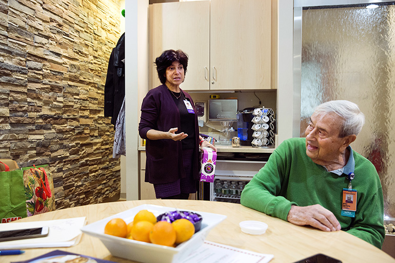 Epstein, an energetic former financial broker who still plays tennis twice a week, knows the hallways well: His wife was a patient at the hospital, Montefiore Medical Center in New York City, before she died. Now he’s one of 30 volunteers who make their rounds there, recruiting stressed-out families to visit a small suite set aside for their comfort and emotional support.