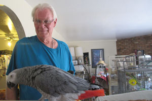 Walter Bianco, 65, playing with one of his tropical birds, has had hepatitis-C for more than 40 years. (Photo by Alexandra Olgin/KHN)