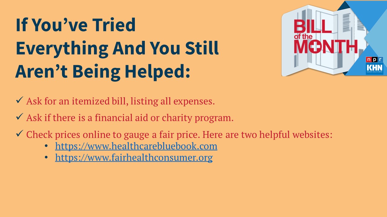In 2018 Kaiser Health News and NPR teamed up to create 鈥淏ill of the Month,鈥 a crowdsourced investigative series in which we dissect and explain medical bills you send us. We have received nearly 2,000 submissions of outrageous and confusing medical bills from across the country.