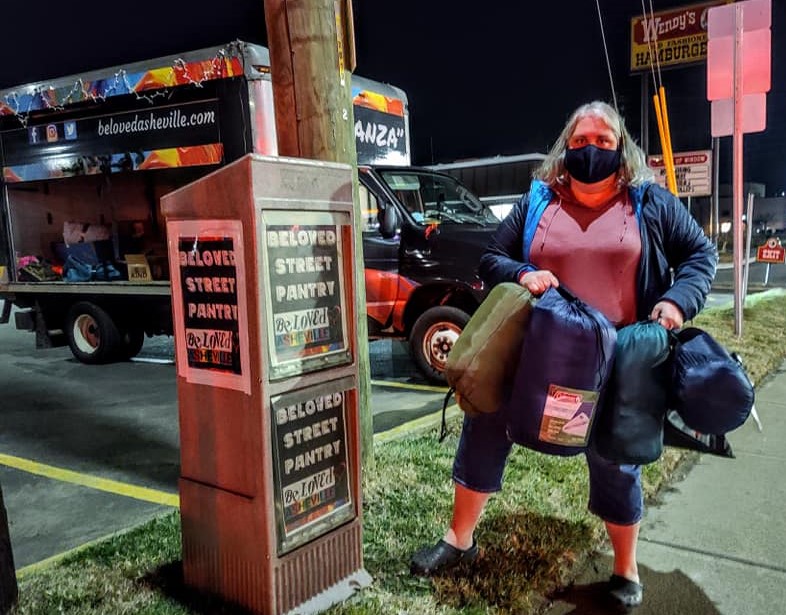 On Mondays and Thursdays, Sigmon and her team travel through downtown Asheville and the rural corners of Buncombe County to hand out lifesaving supplies like insulated tents, sleeping bags, thermal socks, face masks and hand sanitizer to those living outdoors. Now they also pass out flyers about the vaccines and ask people if they鈥檒l pledge to get their shots.